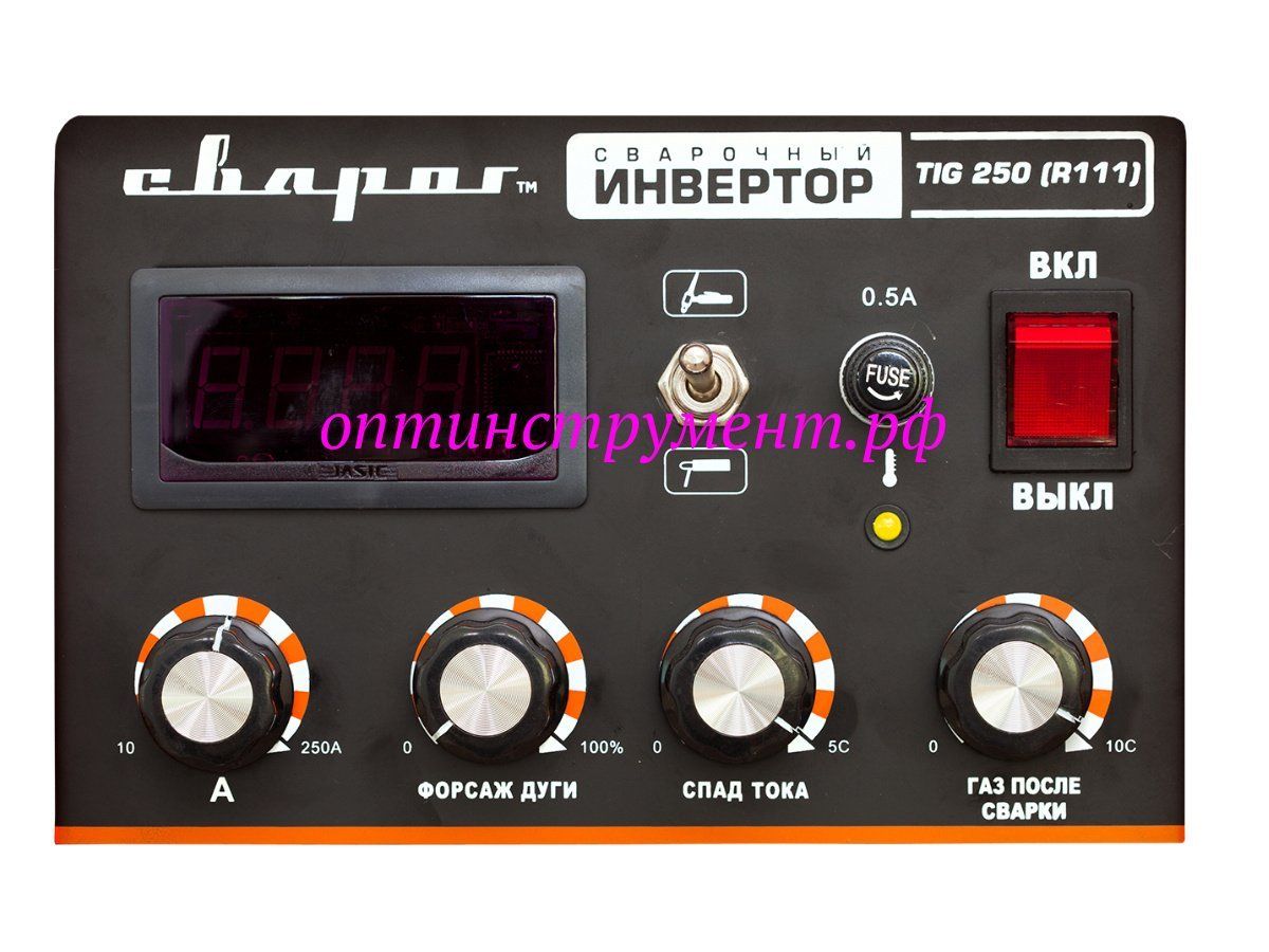 Сварочный аппарат серии STANDART TIG 250 (R111) профессионального уровня для аргонодуговой сварки (TIG) и ручной дуговой сварки покрытым электродом (ММА). Оборудован цифровым индикатором параметров сварки и большим набором ручных регулировок.