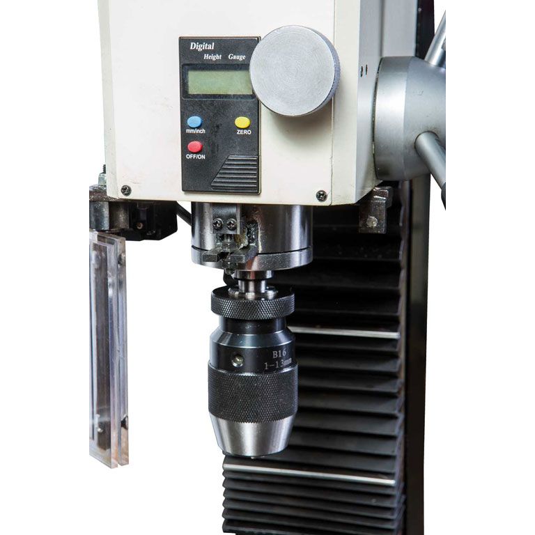 Станок устанавливается на верстак или тумбу и жестко фиксируется на поверхности. За точность вылета пиноли шпинделя отвечает цифровая индикация.