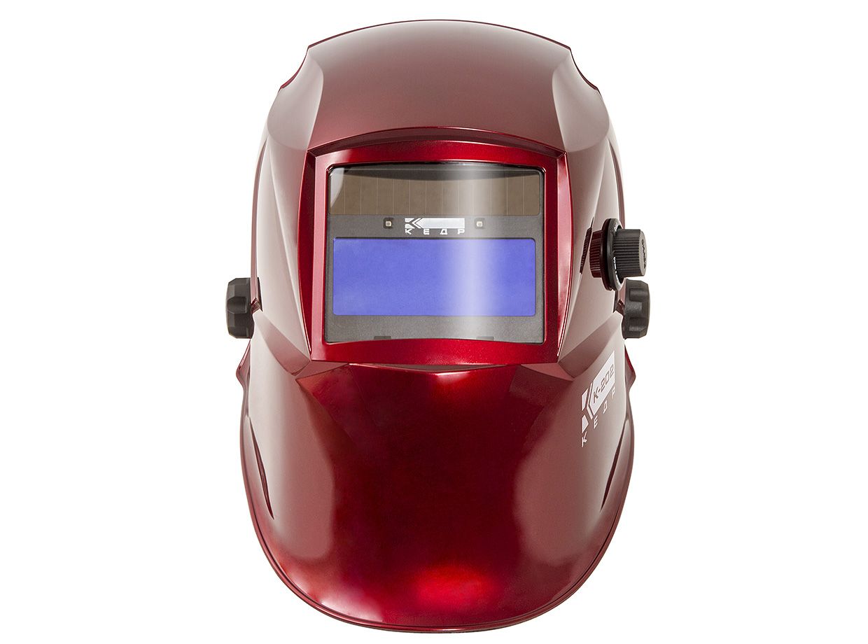 Маска сварщика КЕДР К-202, красная, новая высокотехнологичная продукция, которая использует технологию спектральной фильтрации. Маска с системой изменения степени затемнения от 9DIN до 13DIN и реальным временем включения 0,00003 сек.