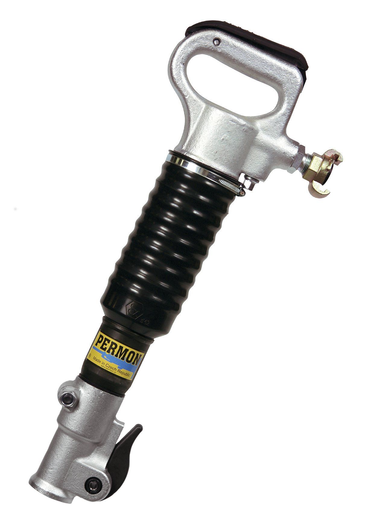 Permon SK 13DZ мощный пневматический отбойный молоток предназначен для разрушения материалов средней твердости таких, как бетон, кирпичная кладка, битумный асфальт, горные породы, в вертикальном и горизонтальном положениях. Вес отбойного молотка SK 13DZ - 13,5 кг, частота ударного воздействия - 21 Гц. Пневматический отбойный молоток Permon состоит из цилиндра с распределителем, поршня, корпуса, рукоятки и держателя пики с защелкой.