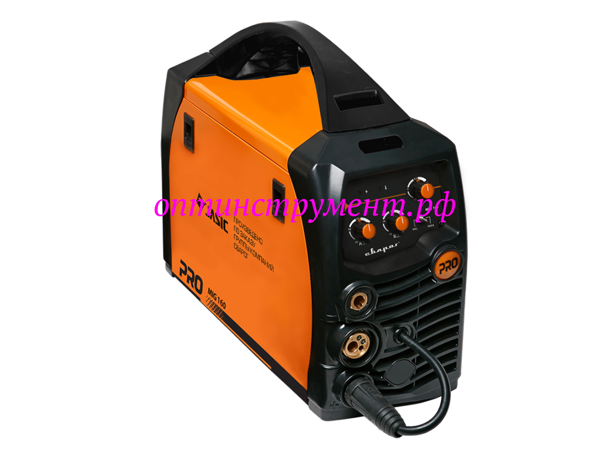 PRO MIG 160 (N219) — инверторный сварочный аппарат, предназначен для полуавтоматической сварки в среде защитного газа (MIG / MAG), сварки порошковой проволокой (FCAW), а также ручной дуговой сварки покрытыми электродами (ММА).