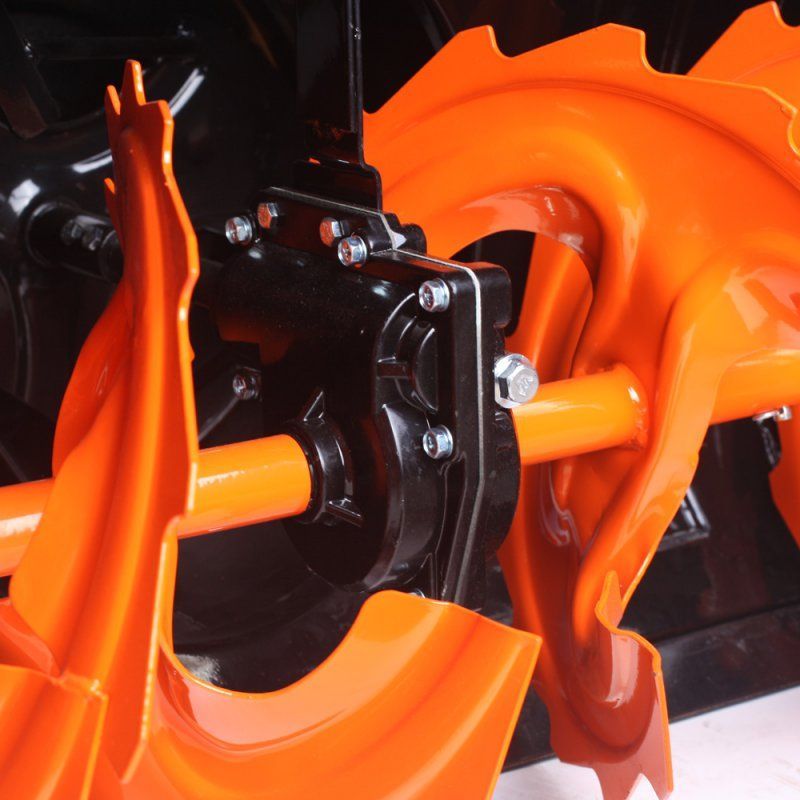 Функция "free hand control" позволяет разворачивать снегоуборщик практически на месте. В конструкции снегоуборщика используются только подшипники, а не втулки. Шестерня редуктора шнека выполнена из бронзы, что в десятки раз увеличивает ресурс снегоуборщика. На заводе производится регулировка и обкатка каждой единицы техники в собранном состоянии.