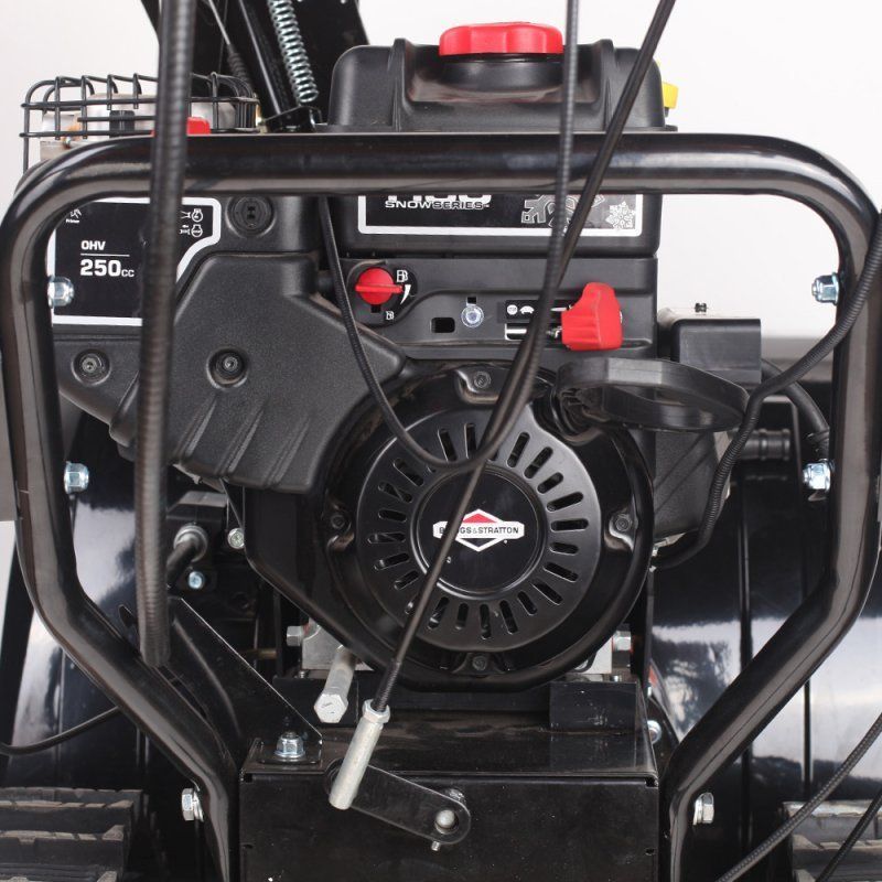 Снегоуборочная машина PATRIOT PRO 951 ED 426108445 предназначена для расчистки средних территорий от снега. Ширина ковша составляет 77 см. Машина оснащена бензиновым двигателем Briggs&Stratton, гарантирующим долгий срок службы и безотказную работу даже в мороз. Гусеницы обеспечивают максимальное сцепление с заснеженным грунтом и исключают пробуксовку, что дает возможность убирать глубокий снег. Предусмотрено восемь передач: 6 вперед и 2 назад. На низких скоростях отлично убирается слежавшийся снег, средние скорости подойдут для рыхлого снега, а высокая скорость удобна для перемещений машины. Шнек с зубцами позволяет перемалывать тяжелый снег.