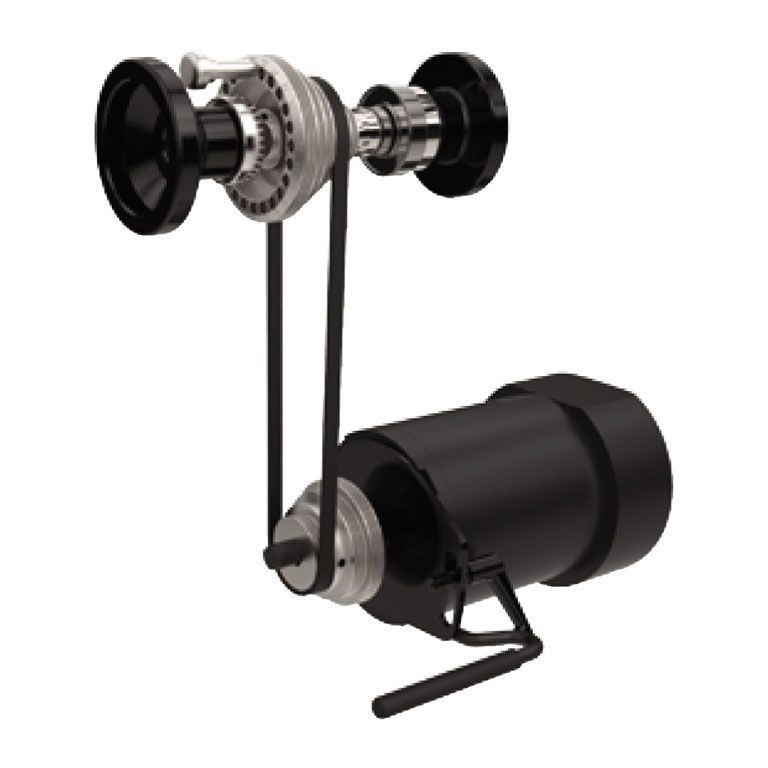 Станок оборудован асинхронным мотором, который работает с постоянной частотой вращения (1400 об/мин). Для выбора силового диапазона предусмотрено три пары шкивов. Смена положения, натяжения и ослабления поликлинового ремня занимает минимум времени и производится без использования вспомогательных инструментов. В дополнение к этому станок оснащается электронной системой регулировки частоты вращения двигателя. Это позволяет реже отвлекаться на переустановку ремня, подстраивая скорость рукояткой на панели управления.