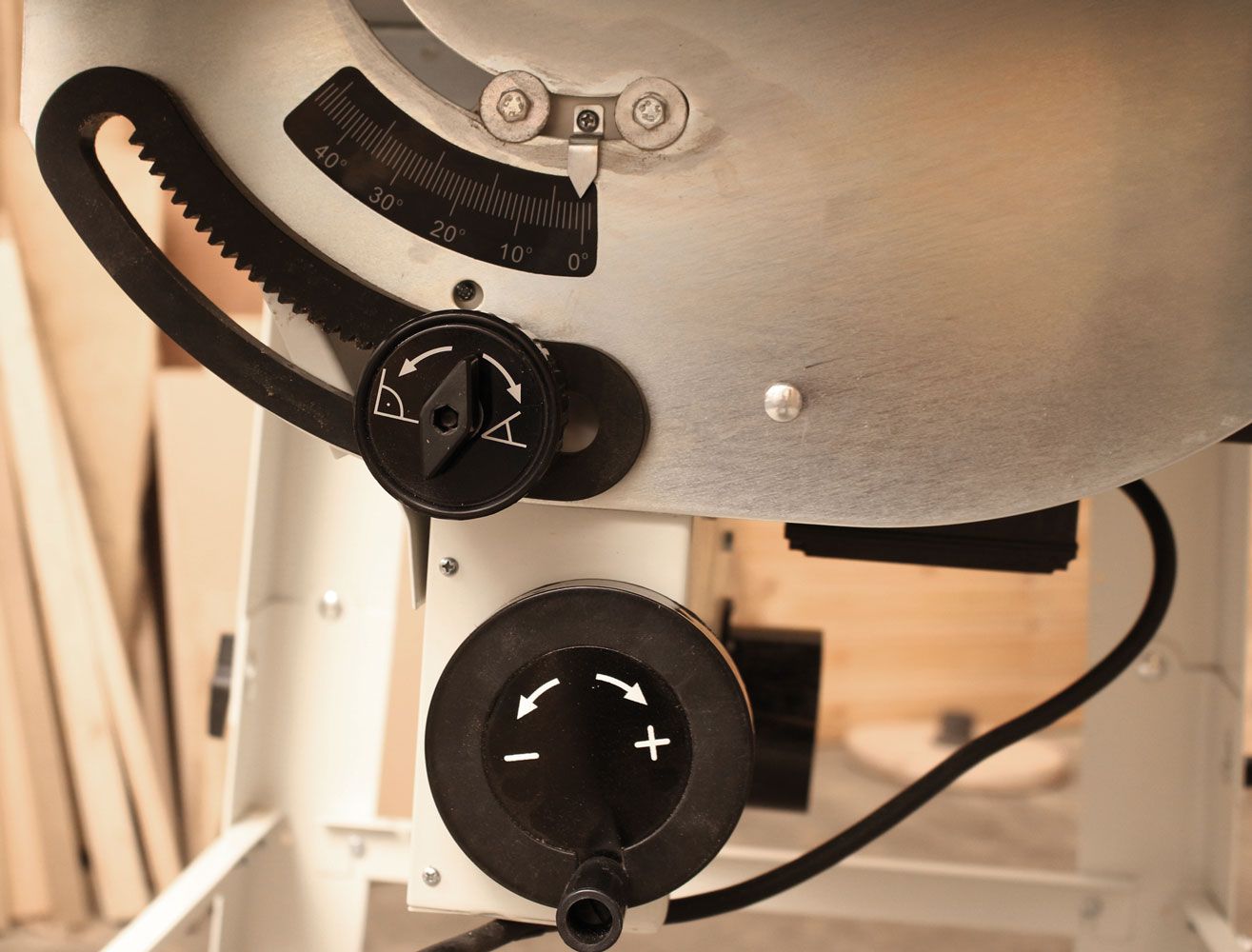 Jet JTS-315LA — мобильная строительная пила с возможностью регулировки наклона и глубины пропила. Предусмотрены съёмный удлинитель стола (входит в стандартную комплектацию) и возможность работы с параллельным или угловым упором. Причем используется для этого один и тот же узел - это основа с угловым транспортиром и съёмная планка-удлинитель. Узел монтируют на поперечную направляющую, фиксируют стопорным винтом и используют как параллельный упор. Для выполнения угловых распилов и для торцевания упор переустанавливают на длинную сторону стола, вдоль которой он может скользить.