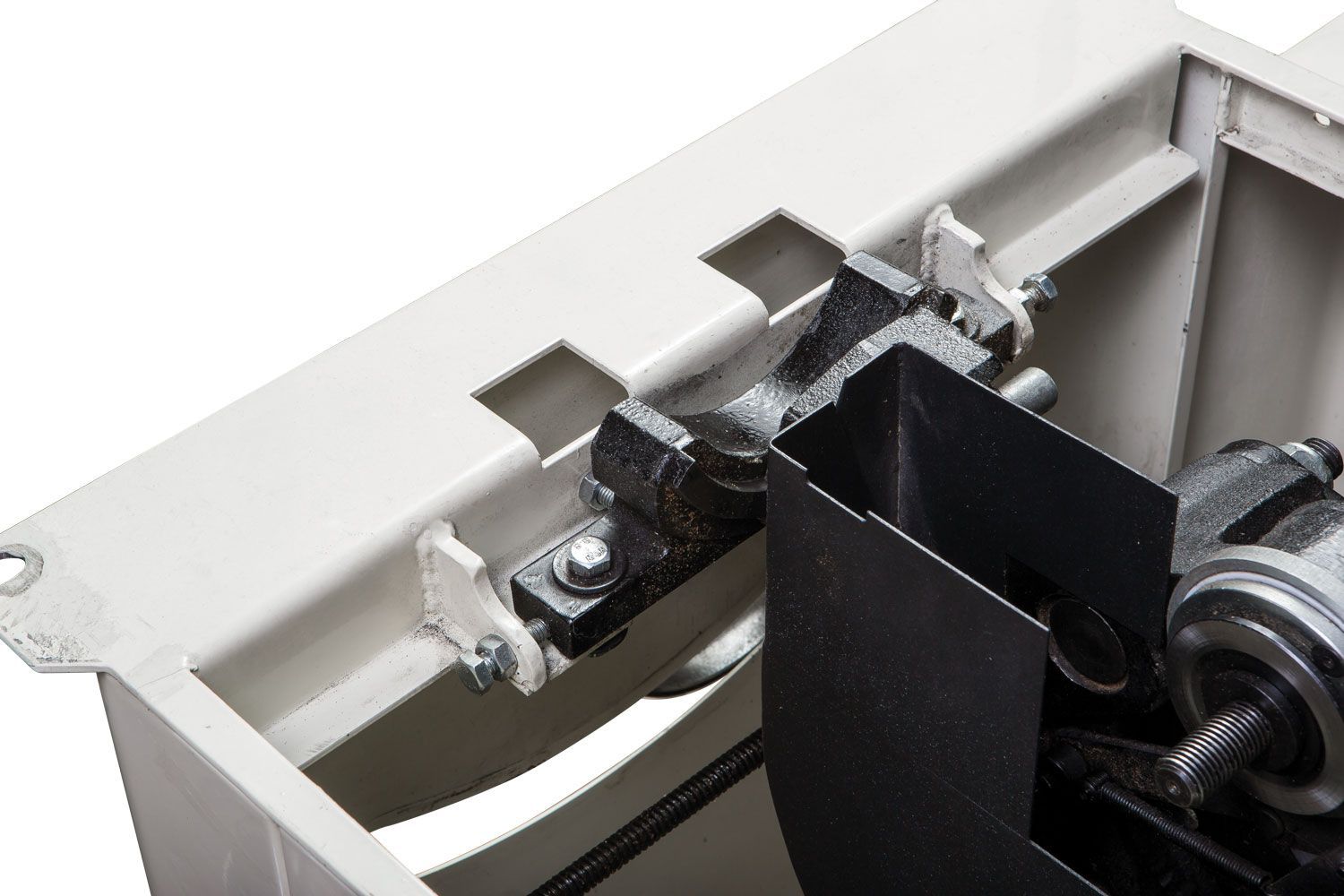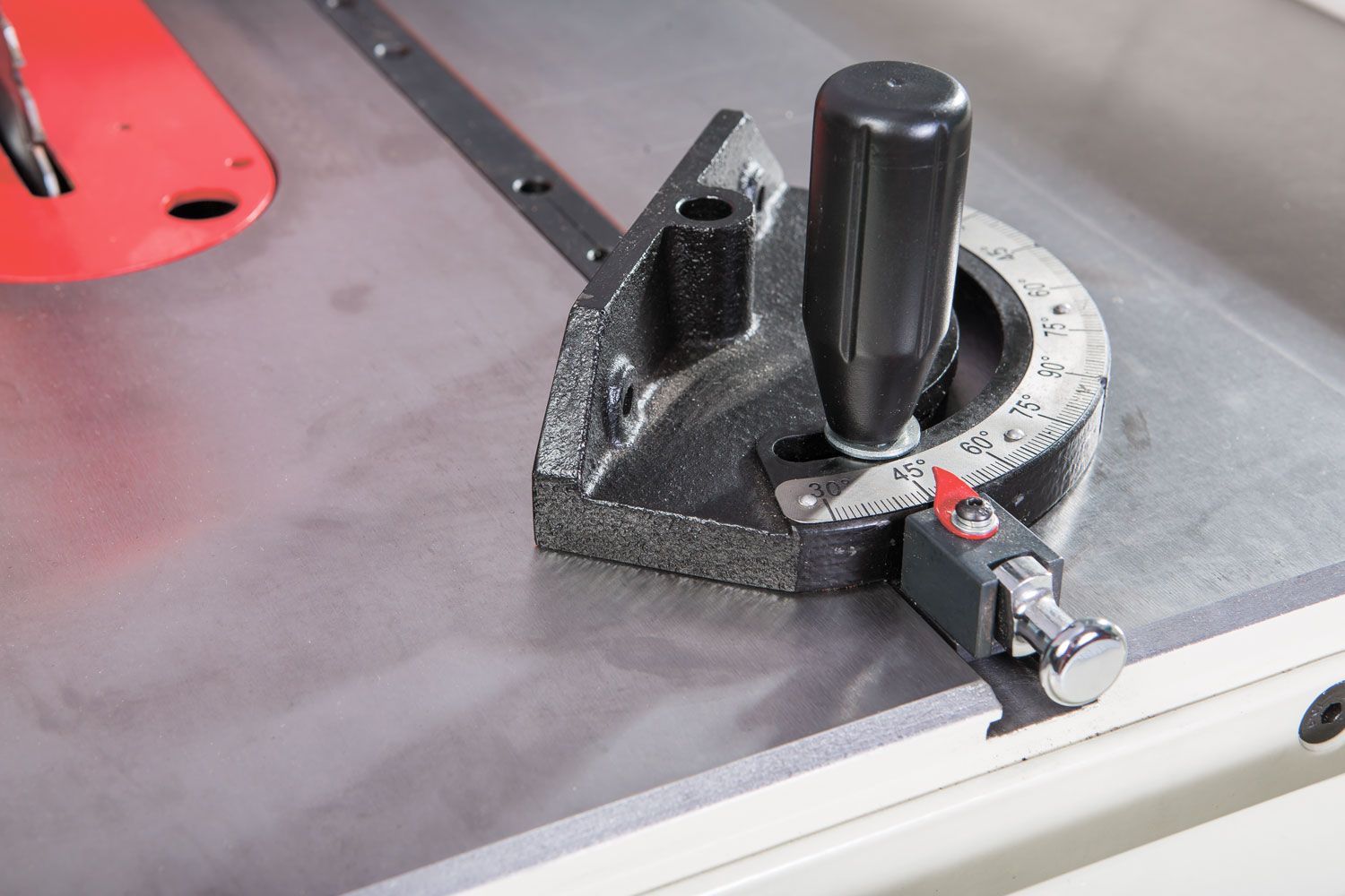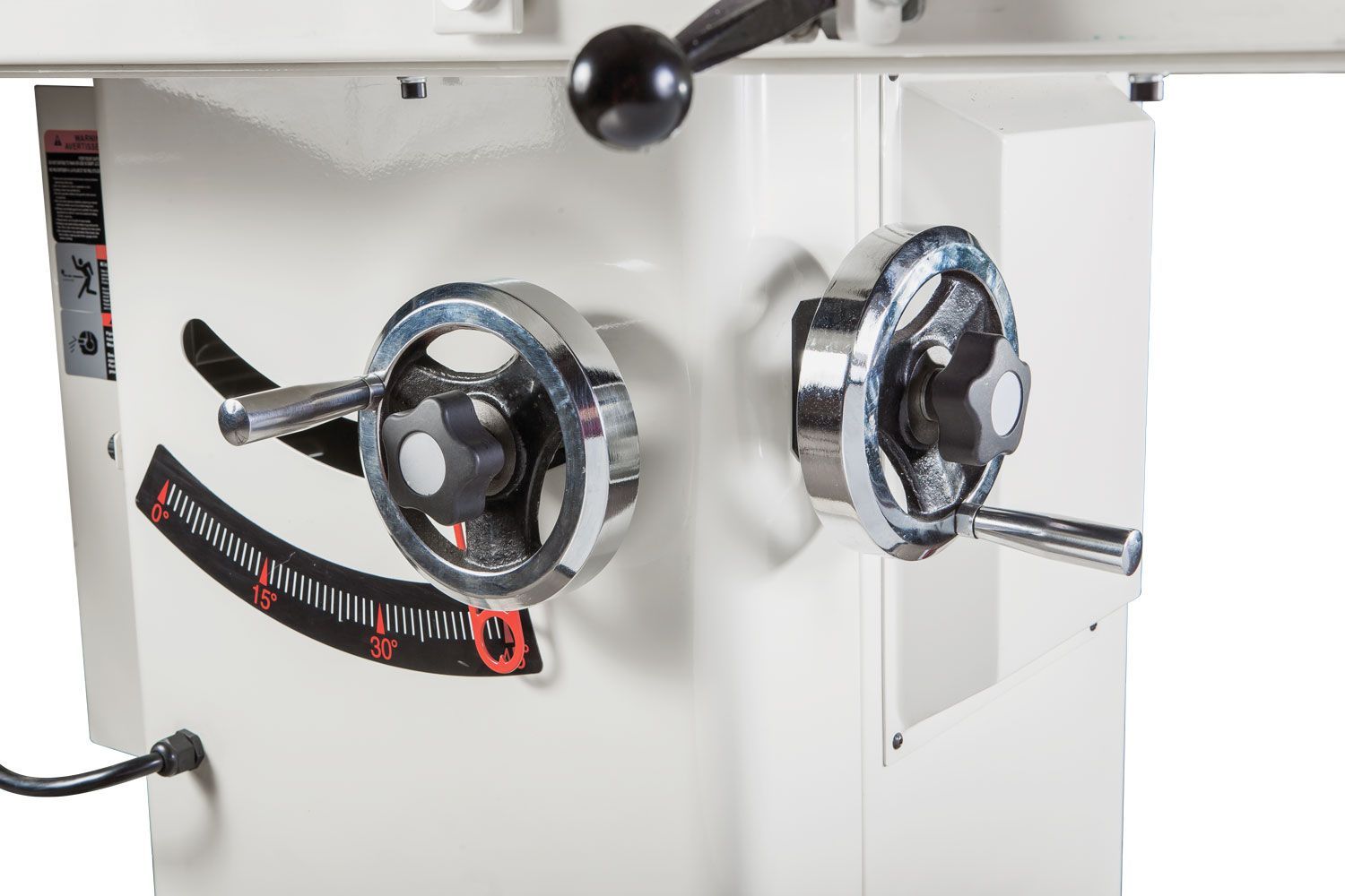 Штатная комплектация включает в себя два чугунных расширителя и параллельный упор с фторопластовыми накладками и эксцентриковой фиксацией на 50-дюймовых направляющих. Все ответственные детали выполнены из массивных чугунных отливок, регулировки высоты и наклона диска производят крупными маховиками, предусмотрена возможность точной юстировки его крайних положений. Такое оснащение, характерное для более дорогих моделей, само по себе делает JTS-250CSX выгодным приобретением. Но есть и другие преимущества: к примеру, конструкция пильного модуля позволяет устанавливать дисковую пазовую фрезу Dado (поставляется за отдельную плату). Для расширения возможностей при работе с этим комплектом доступно в качестве опции шипорезное приспособление. Это зажим для заготовок с возможностью перемещения вдоль Т-образного паза.